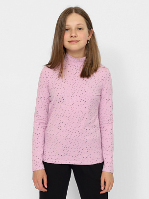 Водолазка для девочки, из трикотажа с эластаном, с длинным рукавом, горловина и верх рукава с декоративной сборкой.