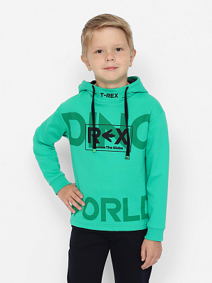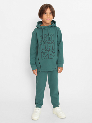 Костюм состоит из куртки и брюк. Куртка без застежки, с капюшоном и карманами в боковых швах. Рукава длинные, с манжетами по низу. Нижний срез куртки обработан притачным поясом. В край капюшона вставлен шнур. Перед куртки декорирован принтом. Брюки с манжетами и притачным поясом. В пояс вставлены резина и шнур.