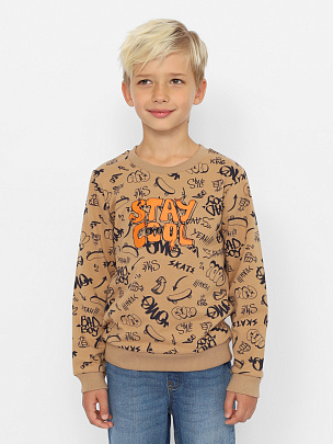 Джемпер для девочки, гладкоокрашенный, из трикотажа с эластаном. Рукав длинный, со сборкой по окату. Перед джемпера декорирован принтом. Нижний срез джемпера слегка присобран эластичной резинкой.