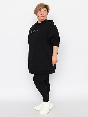Джемпер с контрастными боковыми вставками от горловины до низа рукава. Рукава втачные, длинные. Горловина круглая, обработана притачной планкой из рибаны с лайкрой. Перед декорирован принтом.