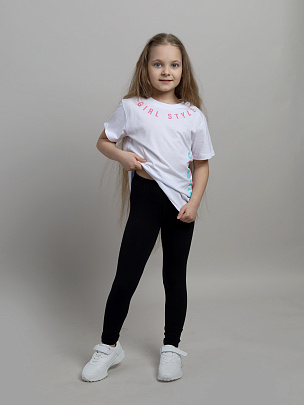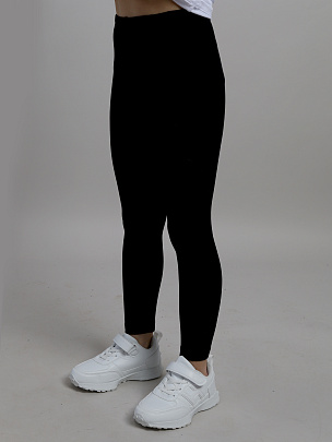 Лосины для девочки без боковых швов. Верхний срез обработан швом вподгибку, с предварительно притачанной резинкой.