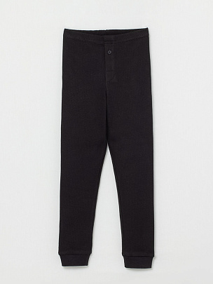 Кальсоны для мальчика из рибаны с клиновидными вставками спереди. Притачной пояс и манжеты по низу ножек выполнены из рибаны с эластаном. В пояс вставлена резинка.