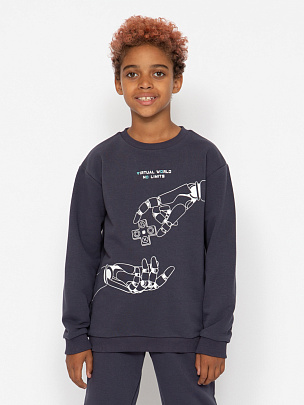 Джемпер с длинными рукавами, притачным поясом и манжетами. Рукав-реглан, отрезной, нижняя часть рукава декорирована принтом "Киберпространство".