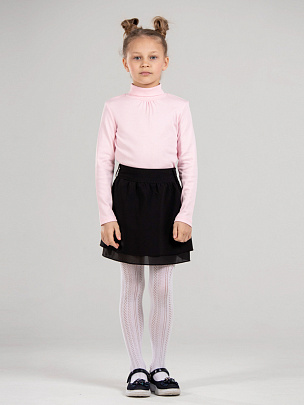 Водолазка с длинным рукавом и высоким воротником-стойкой. Манжеты и воротник выполнены из полотна с добавлением лайкры.