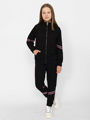 Толстовка с капюшоном и длинными втачными рукавами. Капюшон с подкладкой и шнурком. Рукава с манжетами из полотна с эластаном. Низ толстовки с поясом из полотна с добавлением лайкры. Боковые швы смещены в сторону переда и декорированы кантом контрастного цвета. Перед декорирован принтом с эффектом "ВЫСОКАЯ БАЗА" КВАДРАТ. Брюки с карманами и притачным поясом из полотна с добавлением лайкры, в пояс вставлен функциональный шнур. Нижние срезы брюк обработаны притачными манжетами из полотна с эла...