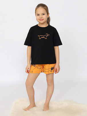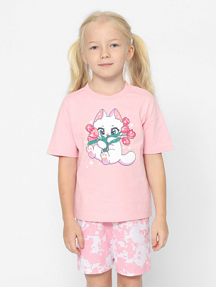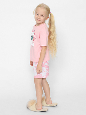 Пижама для девочки из футболки и шорт. Футболка оверсайз с круглой горловиной и короткими рукавами, свободного кроя с милым принтом. Шорты, без карманов из набивного хлопка, имеют удобную посадку, благодаря широкому эластичному поясу. Изделие изготовлено из мягкого и приятного на ощупь полотна. Пижама с шортами - это удобная и универсальная домашняя одежда, в которой можно спать, но и провести весь выходной.