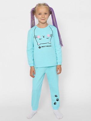 Пижама для девочки (джемпер, брюки) светло-бирюзовая