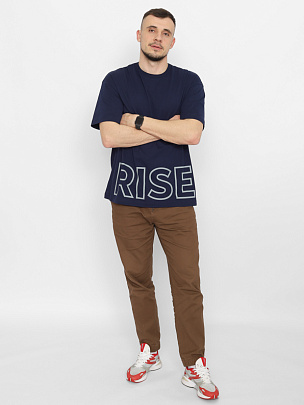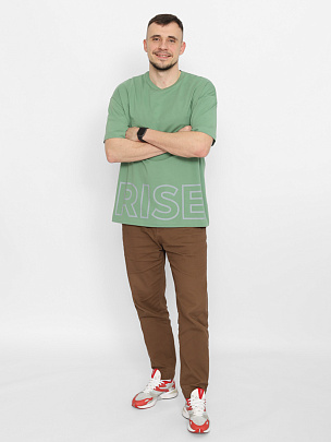 Футболка мужская свободного покроя с короткими втачными рукавами. Горловина круглая, обработана воротником из полотна с эластаном. Перед футболки декорирован принтом "ВОЗВЫШАТЬСЯ".