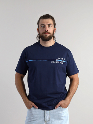 Футболка мужская с коротким рукавом. Вырез горловины круглый, обработан притачной планкой из рибаны с эластаном.