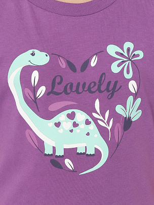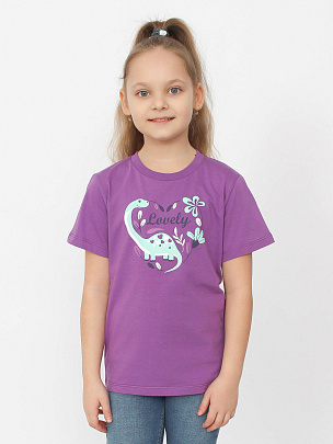Футболка с коротким рукавом. Горловина круглая, обработана узким воротником из полотна с эластаном. Перед оформлен ярким принтом.