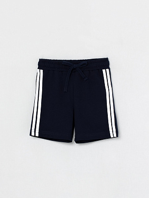 Шорты для мальчика с боковыми карманами и притачным поясом из основного полотна. В пояс вставлена резинка и функциональный шнур.